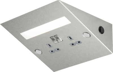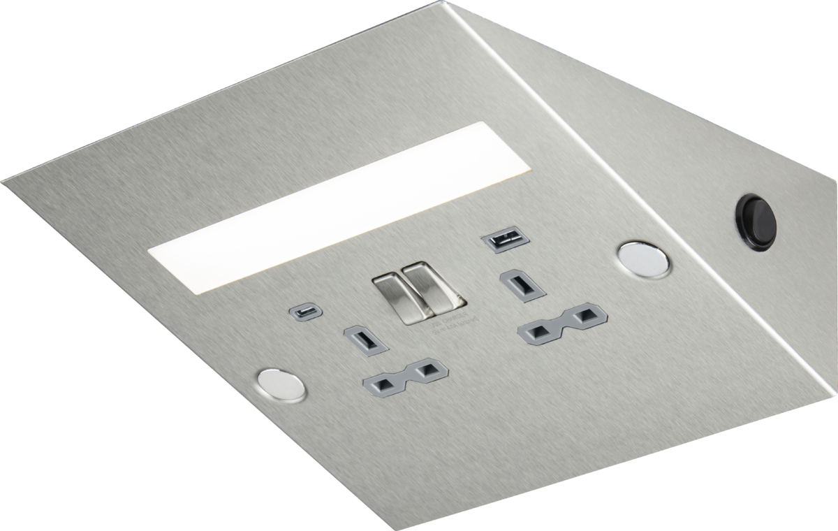 A sleek power solution with USB charging. Can be mounted under cabinet keeping all your power and lighting requirements hidden and out of the way till needed. This model has an elongated design projecting 214.3mm creating a wedge type look. Ideal for kitchens, utility rooms, hotels rooms, media walls or under any sort of cabinets where a power solution is needed