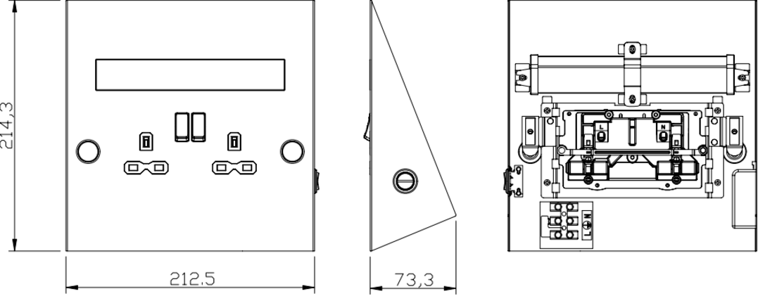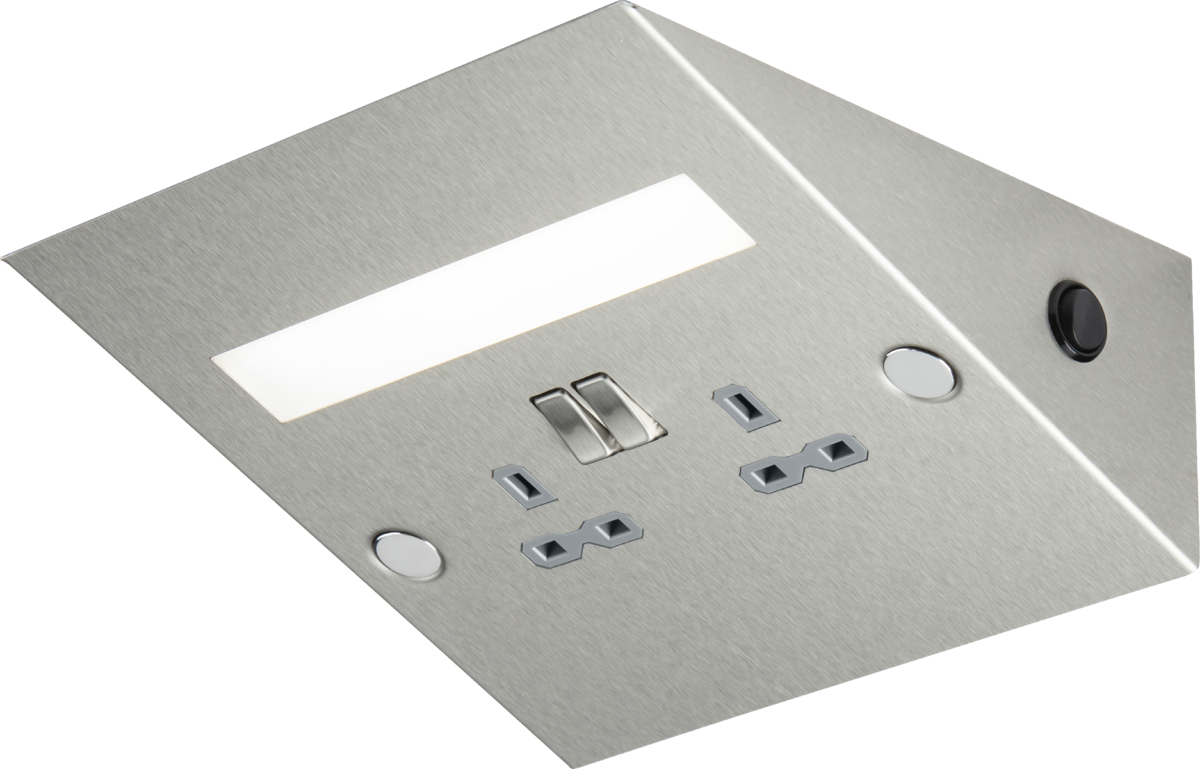 A sleek power that can be mounted under cabinet keeping all your power and lighting requirements hidden and out of the way till needed. This model has an elongated design projecting 214.3mm creating a wedge type look. Ideal for kitchens, utility rooms, hotels rooms, media walls or under any sort of cabinets where a power solution is needed