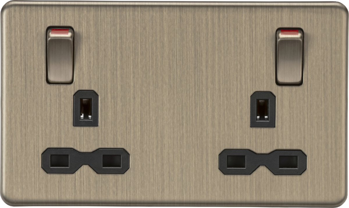 Perfect finishing touch to any modern home, flawless Screwless low profile metal design with matching metal outboard rockers with red flash detail, unique socket insert design that is completely hidden once a plug is inserted.