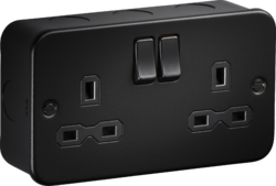 Heavy Duty Metal Clad construction, with textured durable matt Black finish, Metal Matt Black Rockers and black socket insert