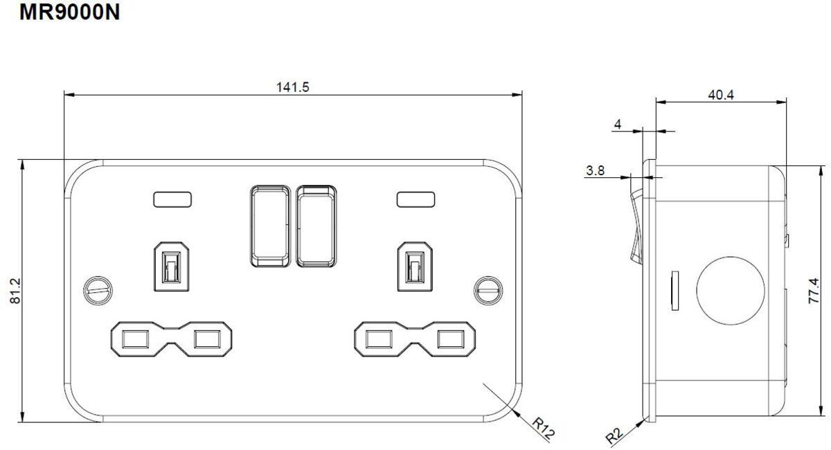 Heavy Duty Metal Clad construction, with textured durable matt Black finish, Metal Matt Black Rockers and black socket insert