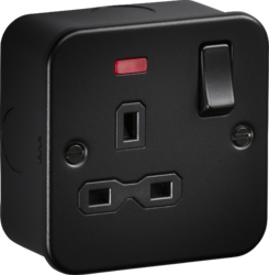 Heavy Duty Metal Clad construction, with textured durable matt Black finish, Metal Matt Black Rocker and black socket insert