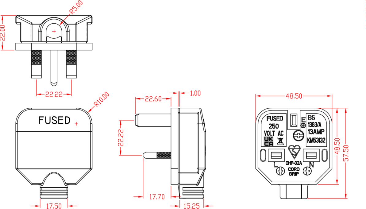 - Fitted with 13A fuse